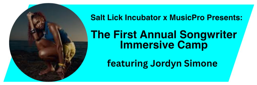 Salt Lick Incubator is presenting an interactive three-day “music camp” at MusicPro ‘26 under the leadership of R&B artist and Salt Lick alum, Jordyn Simone. The camp will invite an intimate group of collaborating attendees to create music in consideration for Jordyn's upcoming EP. She'll be hands-on in each room providing feedback, notes, and fine tuning each song created with the music being shared and celebrated in a group listening session at the end of the camp! The experience concludes with a private session between Jordyn and the creative team behind one of the songs created at the camp!